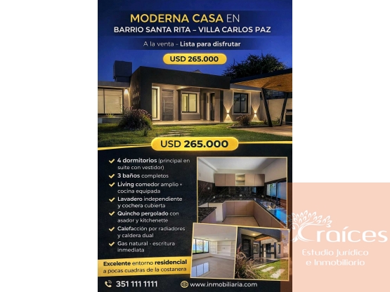 VENTA – CASA MODERNA EN SANTA RITA 4 dorm 206 m² cubiertos