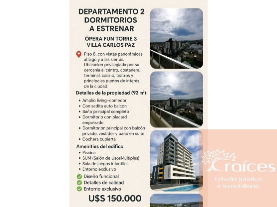 #Venta #Departamento #OperaFun #CarlosPaz #VistaAlLago #InversiónInmobiliaria #RaicesEstudioInmobiliario #VillaCarlosPaz #PropiedadesEnVenta #InmobiliariaCarlosPaz #Estreno #Torre3 #DepartamentoConVista #InversiónSegura
