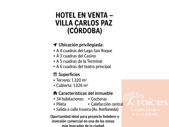 🏨 INMUEBLE CON DESTINO COMERCIAL – HOTEL EN VILLA CARLOS PAZ (CÓRDOBA)